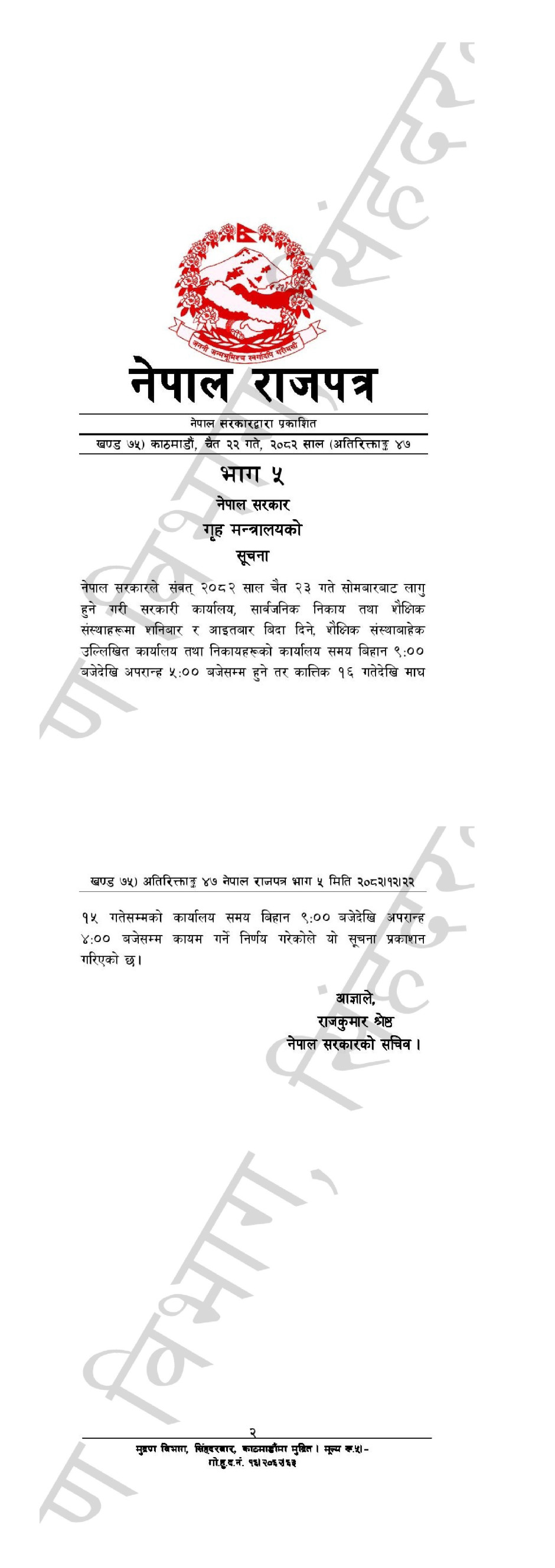 कार्यालय समय परिवर्तन सम्बन्धि सुचना