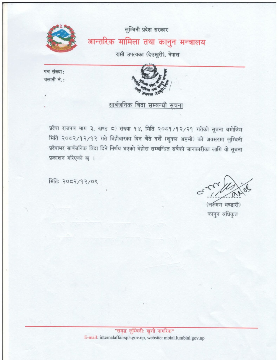 जिल्ला प्रशासन कार्यालय बर्दियाको सूचना ।